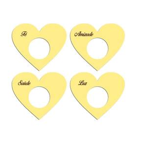 Porta Guardanapo Coração Desejos Kit 4 Peças 7,5cmx6,5cm - Cria Arte Laser Amarelo -
