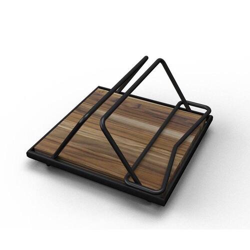 O ;Porta Guardanapo de Madeira de Mesa - Stolf tem o acabamento em epóxi pó, responsável pela coloração preto fosco, ele é uma forma de pintura que envolve toda a superfície do produto, garantindo que o aço fique protegido da água e outros agentes que possam influenciar na vida útil do produto. Esta pintura, além de moderna, é extremamente recomendada para as indústrias, pois a taxa de impactos ao meio ambiente são menores e por não possuir solventes em sua composição.