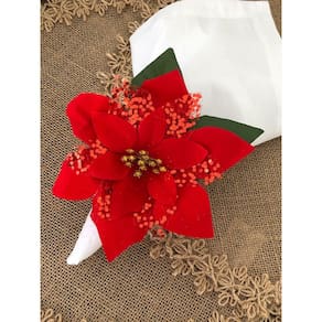 Porta Guardanapo de Natal e Ano Novo, artesanal com Flor Permanente e Argola de Madeira Cerejeira.