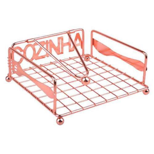 Porta Guardanapos Rose GoldDESCRITIVO:Porta Guardanapos com detalhe talheres e cozinha, possui um peso removível que é encaixado no suporte para manter os guardanapos no lugar.Seu design diferenciado traz estilo e elegância para a mesa.ESPECIFICAÇÕES:Material: MetalCor: RoseMedida aproximada: 19x19cm
