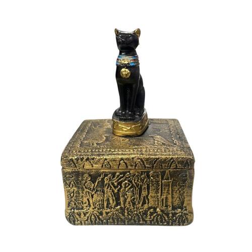 Porta Joia Quadrado Bastet Dourado 12,5 cm em Resina Porta Joia Quadrado Bastet Dourado 12,5 cm em Resina