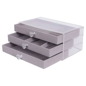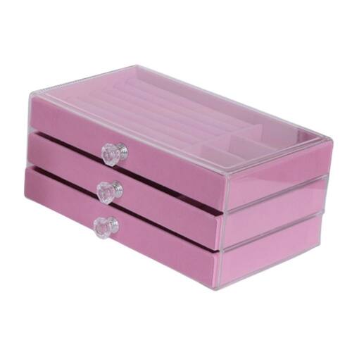 Porta Joias Acrílico com Veludo e 3 Gavetas