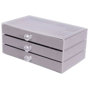 3 gavetas para melhor divisão das joiasInterior em veludo que protege contra riscosEstrutura em acrílico transparente para fácil visualizaçãoDesign elegante que combina com qualquer ambienteIdeal para manter tudo organizado e acessívelIndicado para anéis, colares, pulseiras, brincos e acessórios em geral.