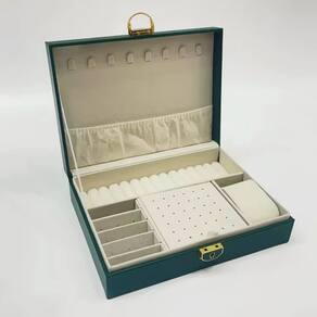 Armazenamento interno personalizável: múltiplos compartimentos separados com divisórias removíveis para acomodar joias de diferentes tamanhos e formatos.