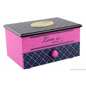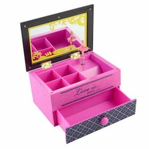 Caixinha em formato de baú com divisões e bailarina que dança ao som da música. Belíssima caixinha de musica e Porta Jóias. O produto é a Corda, a Tampa da Caixinha abre e a bailarina gira enquanto a música toca. Prática, bonita e elegante. Com espelho Dimensões: Comprimento: 15,5 cm Profundidade largura : 8 cm Altura: 10,5 cm Enquanto toca a música a bailarina dança Material: Plástico Ean: 7898440890151