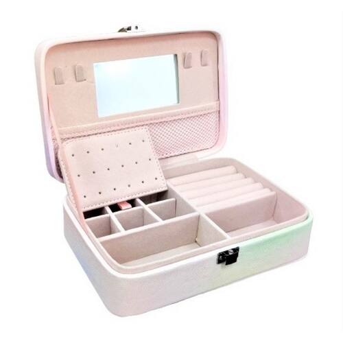 Porta Joia de Couro Sintético Este porta joia é um charme, perfeito para armazenar seus anéis, brincos, pulseiras, colares e pequenos acessórios. Possui um espelho interno embutido, para maquiagem. Ótimo presente para esposas, namoradas e familiares. Ideal para viagens e decoração, este porta joia é compacto e prático, e tem fechamento com trava. Protege suas joias e bijuterias de poeira, arranhões. Feito de material de ótima qualidade e resistente.