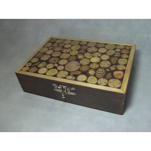Marchetaria A marchetaria é uma técnica de colagem, para a decoração de superfícies, que utiliza diversos materiais. Nos utilizamos as podas de arvores, que são coletadas dos locais em que a prefeitura, as descarta, sendo assim fazemos uma reciclagem dos galhos que foram cortados e deixados para apodrecer.Os desenhos presente na madeira são simplesmente lindos, assim que a peça está pronta isso fica evidente, como vocês podem observar nas fotos. Marca: Frank Atesanatos