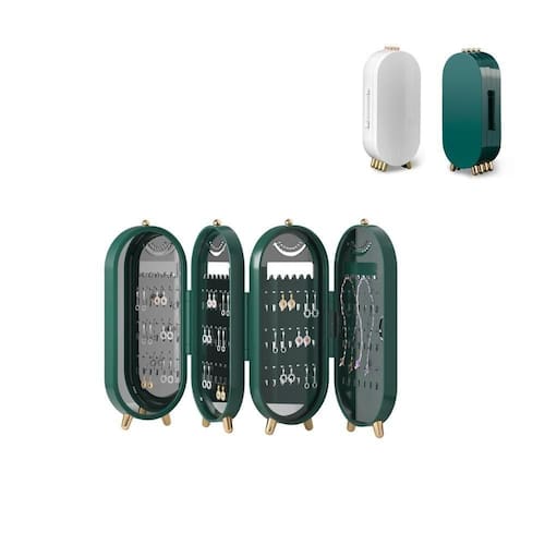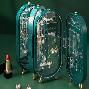 Características: - Design dobrável para fácil armazenamento e - Espelho embutido para praticidade - Compartimentos independentes que evitam atrito entre as joias - Estrutura à prova de poeira, garantindo proteção e conservação das peças