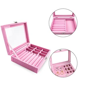 Contém: 01 - Porta Joias com divisórias removíveis, tampa acrílica e forro de veludo rosa