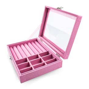 Nosso Porta Joias é um item organizador, encantador e prático, projetado para armazenar e organizar suas joias de maneira elegante, com sua tampa acrílica que permite visualizar todas as peças armazenadas dentro dele. Este delicado recipiente é revestido por dentro e por fora com veludo, proporcionando uma sensação suave ao toque e protegendo suas joias de arranhões e danos. O interior do porta-joias é estrategicamente dividido em compartimentos para oferecer uma organização eficiente e prática. Essas divisórias são projetadas para acomodar diferentes tipos de joias, como anéis, brincos, pulseiras e colares, podendo ser removidas conforme o espaço que desejar. Dimensionada para manter as peças separadas, evitando emaranhado e facilitando o acesso rápido. Oferece um design elegante para armários e penteadeiras, agregando a decoração, além de facilitar a organização e uso de suas peças.