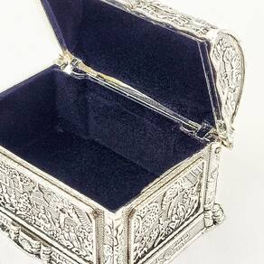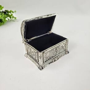 Porta-joias Metal Cromado Desenhos Orientais Prata 8cm
