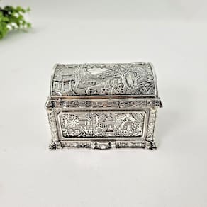 Porta-joias Metal Cromado Desenhos Orientais Prata 8cm
