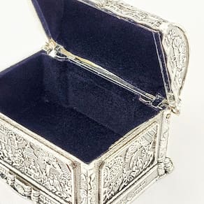Porta-Joias Metal Cromado Desenhos Orientais Prata 8Cm