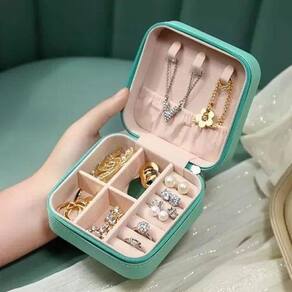 -nome do artigo: caixa de jóias -material: micro fibra de couro -dentro aveludado -possui 14 compartimentos -fechamento do porta joias em zíper -a caixa de jóias pode manter sua jóia bem e fornecer um toque confortável. O que a caixa de jóias pode oferecer-lhe é que por suas necessidades para vários acessórios na vida diária. Feito de material de couro de micro fibra, é duradouro. É adequado para guardar todos os tipos de jóias. Medidas: