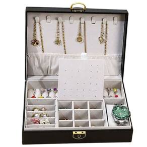 Armazenamento interno personalizável: múltiplos compartimentos separados com divisórias removíveis para acomodar joias de diferentes tamanhos e formatos.