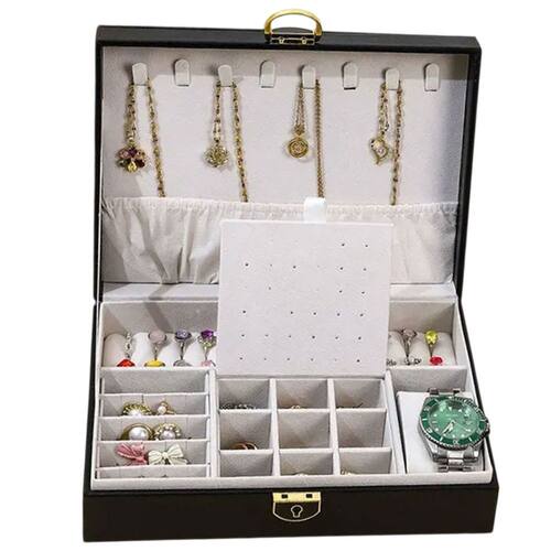 Cada compartimento foi projetado para dar a cada acessório o cuidado que ele merece. Inclui também uma fechadura com chave para trancar o estojo com segurança e manter estranhos e crianças longe de seus objetos de valor.