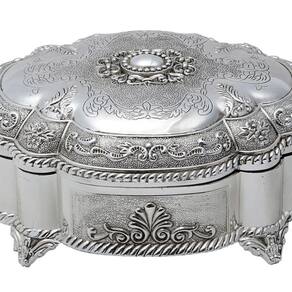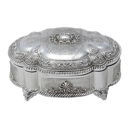 Com dimensões generosas de 20x16x9cm, este porta joias oferece muito espaço para organizar e proteger suas joias. Seu exterior prateado e detalhes meticulosamente trabalhados o tornam uma peça essencial para quem valoriza a beleza e a sofisticação.
