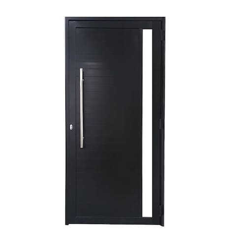 Porta Lambril 2,10x70 lado DIREITO L-25 no alum. preto c/puxador redondo e vidro lateral