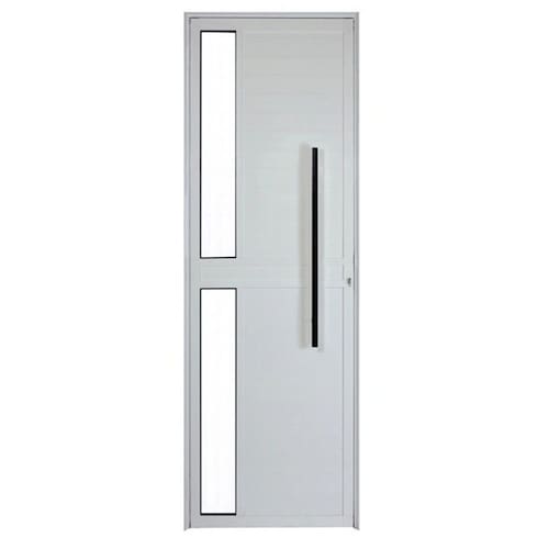Porta Lambril 2,10x70 lado ESQUERDO L-25 no alum. branco c/puxador redondo e vidro lateral