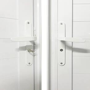 Fabricada com alumínio de alta qualidade e com pintura eletrostática preta resistente a diversos fatores. O produto acompanha batente, maçaneta e fechadura com par de chaves.