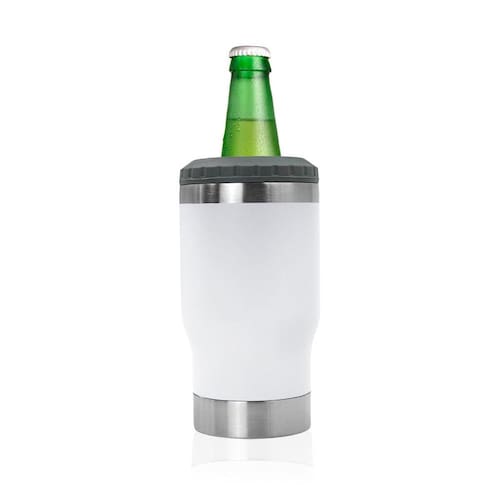 Porta Lata E Garrafa Long Neck Térmico Com Abridor - Branco Copo Térmico Porta Lata Garrafa Long Neck Copo e Abridor O Copo Térmico Multifuncional possui diversas utilidades para melhorar seu lazer. Possui alta eficiência térmica, podendo ser utilizado como copo, ou para comportar long neck, lata normal, lata fina, barrigudinha, latão e também conta com um abridor de tampinha. É feito em Aço Inoxidável, com dupla parede a vácuo para conservar melhor a temperatura, e uma tampa flexível para se adequar ao que você vai beber. Mantém sua Bebida por até 4 horas Gelado, ou com Bebida Quente por até 1 hora. Especificações Técnicas: - Modelo: Copo Térmico Porta Lata Long Neck - Material: Plástico, Aço Inoxidável, Silicone - Cor: Vinho, Preto, Branco, Azul Marinho, Laranja, Rosa. - Capacidade do Copo: 420ml - Pode Comportar: Long Neck 330ml, Lata Padrão 350ml, Lata Fina 350ml, Garrafa Retornável 300ml, entre outros. - Dimensões Aprox.: 6,5cm Diâmetro Interno X 8cm Diâmetro Externo X 15,5cm Altura - Peso Aprox.: 260g Itens Inclusos na Embalagem: - 01x Copo Térmico Porta Lata - 01x Tampa Rosqueável