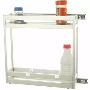 Porta latas/óleos Lateral bronze com trilhos 130x450x450mm Produto confeccionado em alumínio anodizado, acompanha trilhos telescópicos zincados, que vão montados na peça.Tem a variação de trilhos telescópicos com amortecedor.Seus fundos, para o apoio das latas e condimentos, agora são feitos por bandejas em inox 430, até mesmo no modelo anodizado fosco. Os trilhos não entram na garantia dos produtos. Código: 9303 - bronze - trilhos normais sem amortecedor Medidas totais: 130x450x450mm