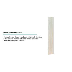 Onde pode ser utilizado: - Guarda Roupa Closet sem Porta 159,2cm 3 Gavetas, 2 Cabideiros, Maleiro e Nichos Prime Luciane Móveis - Como porta lateral