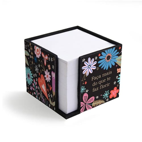 Porta Lembrete bloco Fiore Fina Ideia Para deixar sua mesa mais fofa Porta-lembretes em madeira revestida com as nossas lindas estampas Contém 650 folhas em papel offset liso, gramatura 75g.