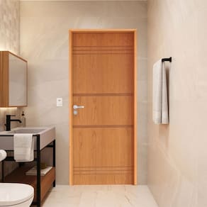 Porta Lisa Padrão Imbuia Belíssima 7 Batente Ecológico 11 Fechadura Stilo Wc 82 X 2,10 e Natural