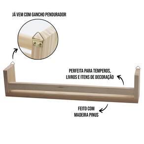 Porta livros grande prateleira temperos condimentos pinus Prateleira pinus decorativa casa cozinha Essa é para você que quer um tipo de prateleira totalmente customizável, grande e estilosa em casa ela é perfeita para todo tipo de decoração, como bonecos, pequenos vasos, livros ou até mesmo para decorar sua cozinha colocando temperos. Material: madeira pinus natural Tamanho: 57cm comprimento 11cm altura 10cm profundidade 18mm espessura Acompanha 2 argolas ja instaladas na prateleira para facilitar fixação - entregam para todo país resp: sim, fazemos entrega em até 24hs e para todo o país - tem a Quem somos Marca: Não Informado Ean: 7898732691411