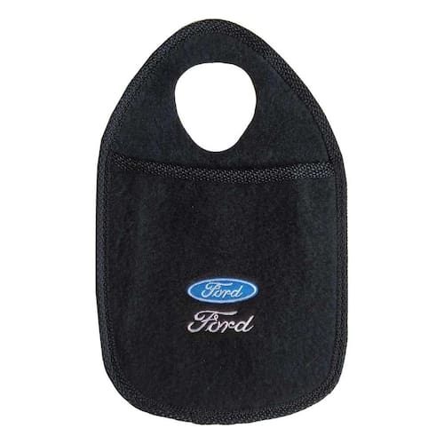 Porta Lixo Automotivo Carpete com Logo Bordado Ford Com acabamento na cor preta, produzido com carpete altamente resistente e com belo bordado, Este Porta Lixo dá um toque especial e fução e ainda pode ser lavado.