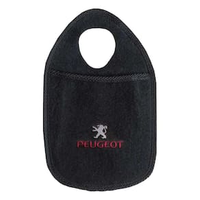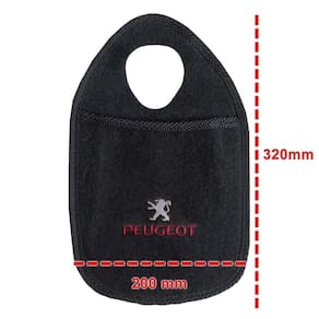 Porta Lixo Automotivo Carpete com Logo Bordado Peugeot Com acabamento na cor preta, produzido com carpete altamente resistente e com belo bordado, Este Porta Lixo dá um toque especial e fução e ainda pode ser lavado.