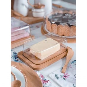 - 1 Porta Manteiga Bambu com Tampa Acrílico 19 cm x 13 cm