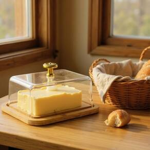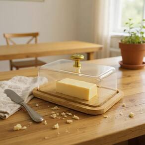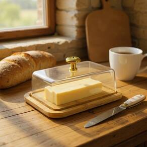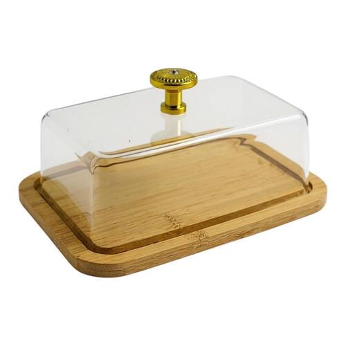 Porta Manteiga Manteigueira Com Bandeja Bambu Tampa Acrílico