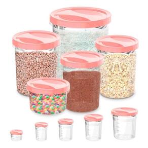 Porta Mantimento Conjunto Potes Tampa Com Rosca 5 Peças Rosa Kit Com Cinco Potes Redondos Com Tampa de Rosca Ideal para o dia a dia e garante o armazenamento e transporte de diversos alimentos. Pode ser levado ao micro-ondas, lava louças e freezer.