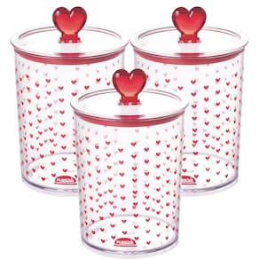 Este pote de 500ml auxilia no armazenamento de mantimentos, doces, biscoitos e tudo aquilo que se pretende armazenar com a certeza de manter seu conteúdo fresco ainda por mais tempo, já que conta com uma vedação interna de borracha na tampa, que protege os alimentos da ação do ambiente externo. O pote conta com um recipiente único generoso, com base interna lisa e oferece espaço necessário para acomodar conteúdos menos volumosos. A tampa conta com um delicado puxador em formato de coração vermelho.