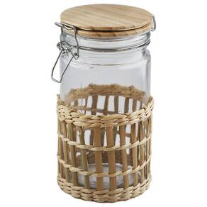 Porta mantimentos pote vidro fibra e tampa bambu hermético O nosso porta mantimentos de vidro com fibra natural e tampa bambu hermético é a escolha perfeita para armazenar seu alimentos, deixando sua cozinha mais organizada e elegantes. Com seu acabamento em fibra natural e tampa de bambu hermética, este pote adiciona um toque de charme rústico à sua cozinha ou em bancadas, complementando a decorações. Com capacidade para 1,2l, este pote é perfeito para armazenar uma quantidade adequada.