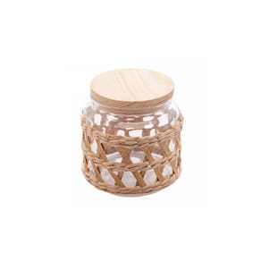 • 1 Porta Mantimentos em Vidro com Sisal e Tampa em Madeira