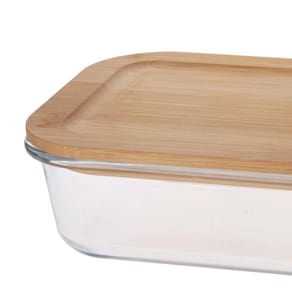 Qualidade e resistência em cada detalhe O Porta Mantimentos Retangular Dynasty é a solução perfeita para armazenar seus alimentos com segurança e elegância. Fabricado em vidro borossilicato, um material altamente resistente a mudanças de temperatura e impactos, ele garante durabilidade e praticidade no seu dia a dia. Com capacidade para 1 litro, é ideal para conservar uma variedade de mantimentos, desde grãos até especiarias, mantendo-os frescos por mais tempo. A tampa em bambu adiciona um toque de sofisticação, complementando o design clean e moderno do recipiente.