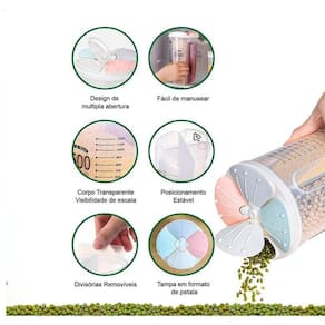 Guarde arroz, feijão, macarrão, café, açúcar e muito mais em um único pote.