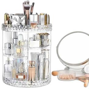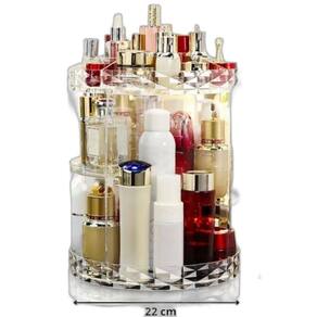 Material: Acrílico de alta qualidade Design: Moderno e elegante Divisórias: Quatro compartimentos para organização eficiente Montagem: Fácil e rápida Base: Giratória 360 para acesso rápido aos cosméticos Versatilidade: Ideal para organizar maquiagens e também pode ser utilizado como porta-joias