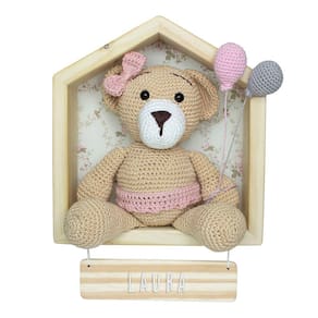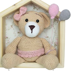 Esse enfeite é sucesso absoluto para porta de maternidade e quartinho de bebê! Desenvolvido artesanalmente em material de alta qualidade conta com decoração exclusiva e moderna. Além disso, personalizamos com o nome do bebê!• Dados TécnicosNicho em formato de casinha feito em madeira pinus encerada e tecido de fundo, o nome do bebê em acrílico fixado na plaquinha pendurada e decorado com ursinha amigurumi de croche.• Medidas da CasinhaLargura: 25 cmAltura: 27 cmProfundidade: 8,5 cm• Medida com PlaquinhaAltura: 35 cm