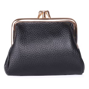 Bolsa de moedas Pik-Me-Up de couro granulado com hardware dourado brilhante com moldura tripla Pik-Me-Up com 2 bolsos grandes e um bolso externo deslizante.