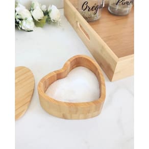 Apresentamos o Saleiro de Coração com uma diversificação de uso com uma encantadora tampa de bambu, uma peça que combina funcionalidade e beleza ao ambiente.
