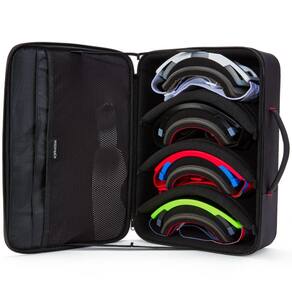 - Bolsos internos em malha macia - localizados na tampa e nas divisórias, permitem armazenar lentes, tear-offs, cartuchos de roll-off e outros acessórios com segurança