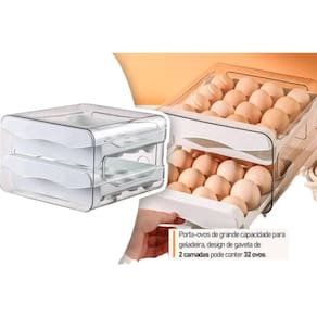 Porta Ovos Acrilico para Geladeira Gaveteiro Duplo 32 Ovos Organizador de Ovos 32 Unidades Descubra uma solução prática, higiênica e econômica para armazenar até 32 ovos com acesso fácil e visualização rápida, ideal para geladeira ou despensa.