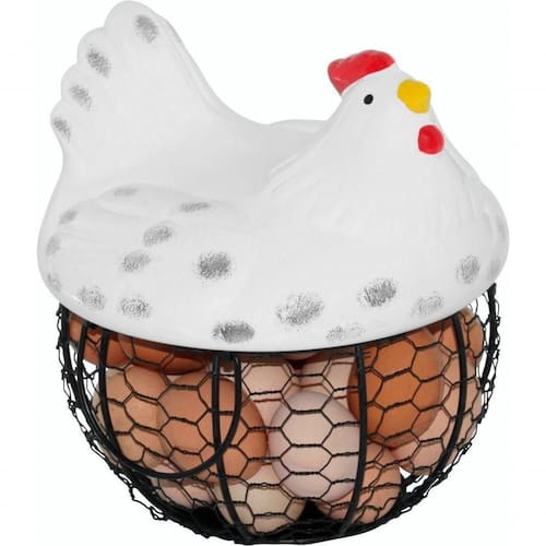 Porta Ovos Cesto Metal Galinha Cerâmica Decorado Porta Ovos Cesto Metal Galinha Cerâmica Decorado - Cesto Porta Ovos em Metal e Cerâmica Formato Galinha