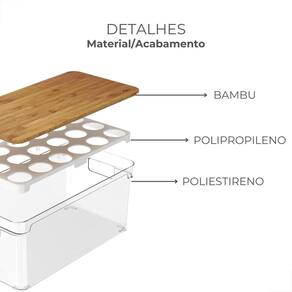 Feito com matéria-prima de alta qualidade, o Organizador de Ovos possui estrutura de bambu combinada com poliestireno PS , proporcionando durabilidade e resistência. Além disso, o acabamento em bambu confere um toque elegante ao produto, tornando-o perfeito para qualquer estilo de cozinha.
