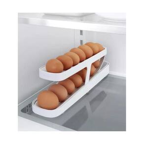 Porta ovos organizador suporte dispenser geladeira 2 andares Mantenha seus ovos frescos e organizados com esse organizador de geladeira. Com prateleiras de 2 andares, este porta ovos rolante facilita o acesso e armazenamento eficiente de de até 15 ovos a quantidade pode variar de acordo com o tamanho dos ovos . Seu design prático e compacto maximiza o espaço na geladeira, garantindo que os ovos estejam sempre à mão e protegidos contra quebras. Ideal para qualquer cozinha, este dispenser é a solução perfeita para um armazenamento de ovos seguro e organizado.