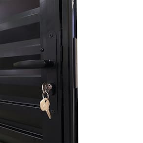 O produto acompanha batente, fechadura com par de chaves, maçaneta e conta com pintura eletrostática preta resistente a diversos fatores.